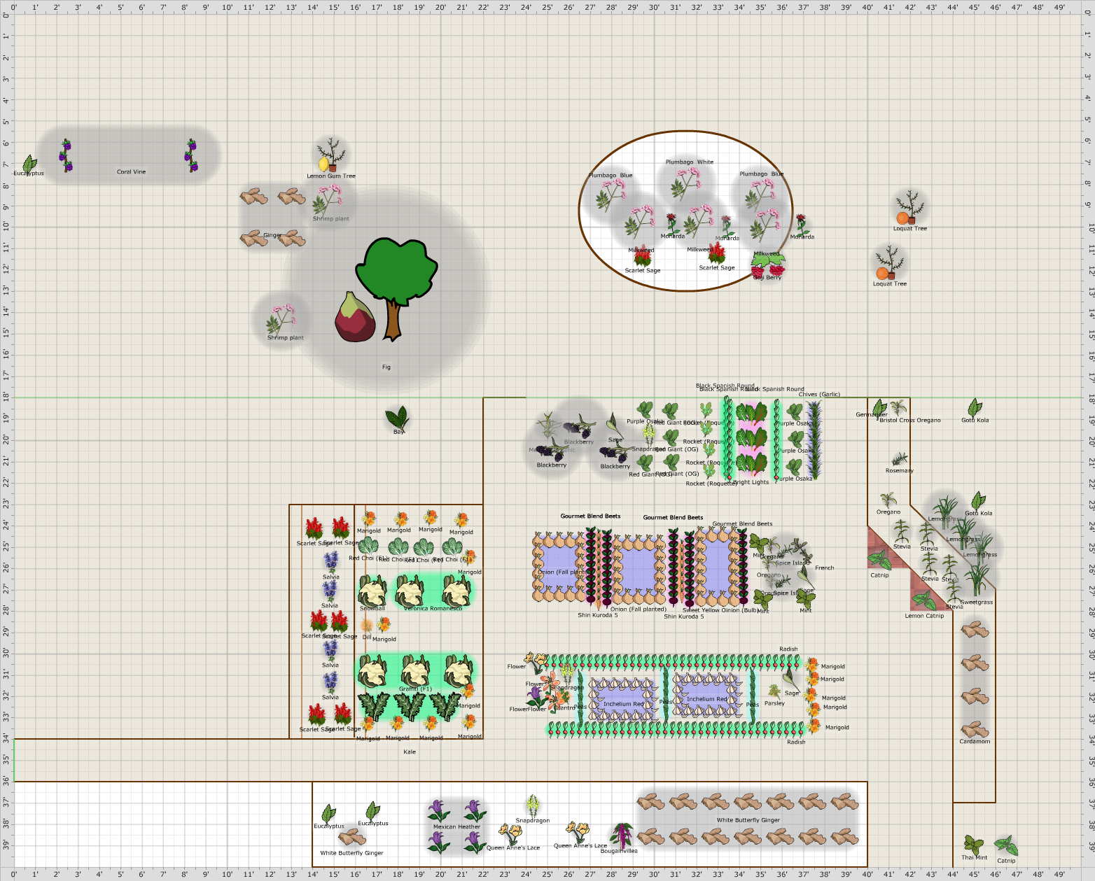 | | Plant | Number | Plants per Square Foot | Notes |