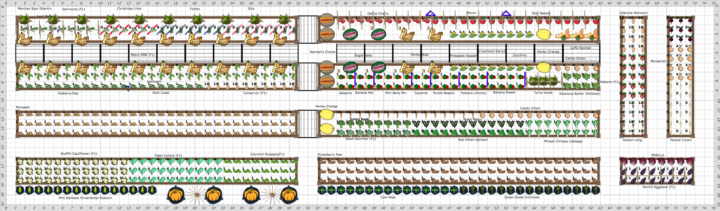 | | Plant | Number | Plants per Square Foot | Notes |
