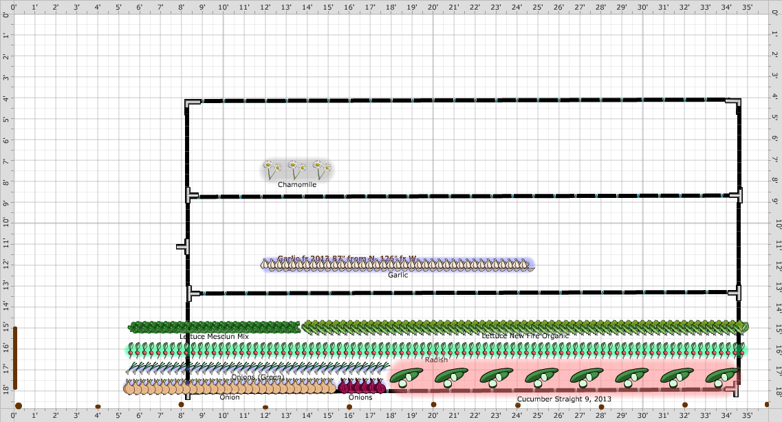 | 38 | 15cm | 10cm x 25cm | Garlic fr 2013 87" from N, 126" fr W, 146" fr E