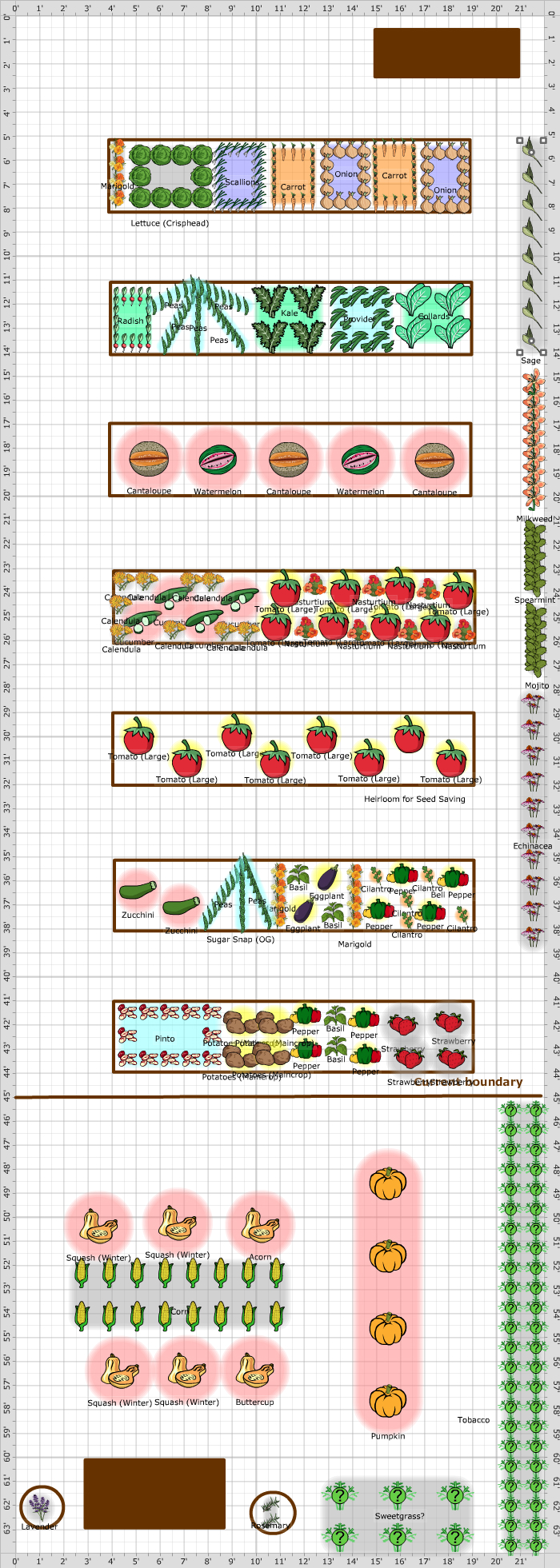 Here is the second draft of our garden plan. Minus the irrigation. Check to see if I forgot anything we wanted to have planted in the garden!