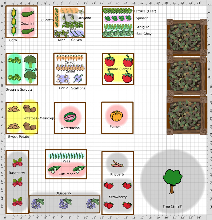 | | Plant | Number | Spacing | Spacing in Rows | Notes |