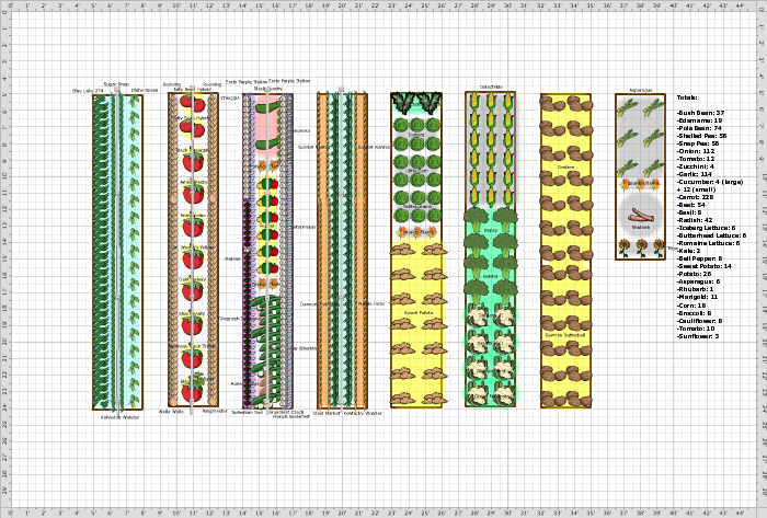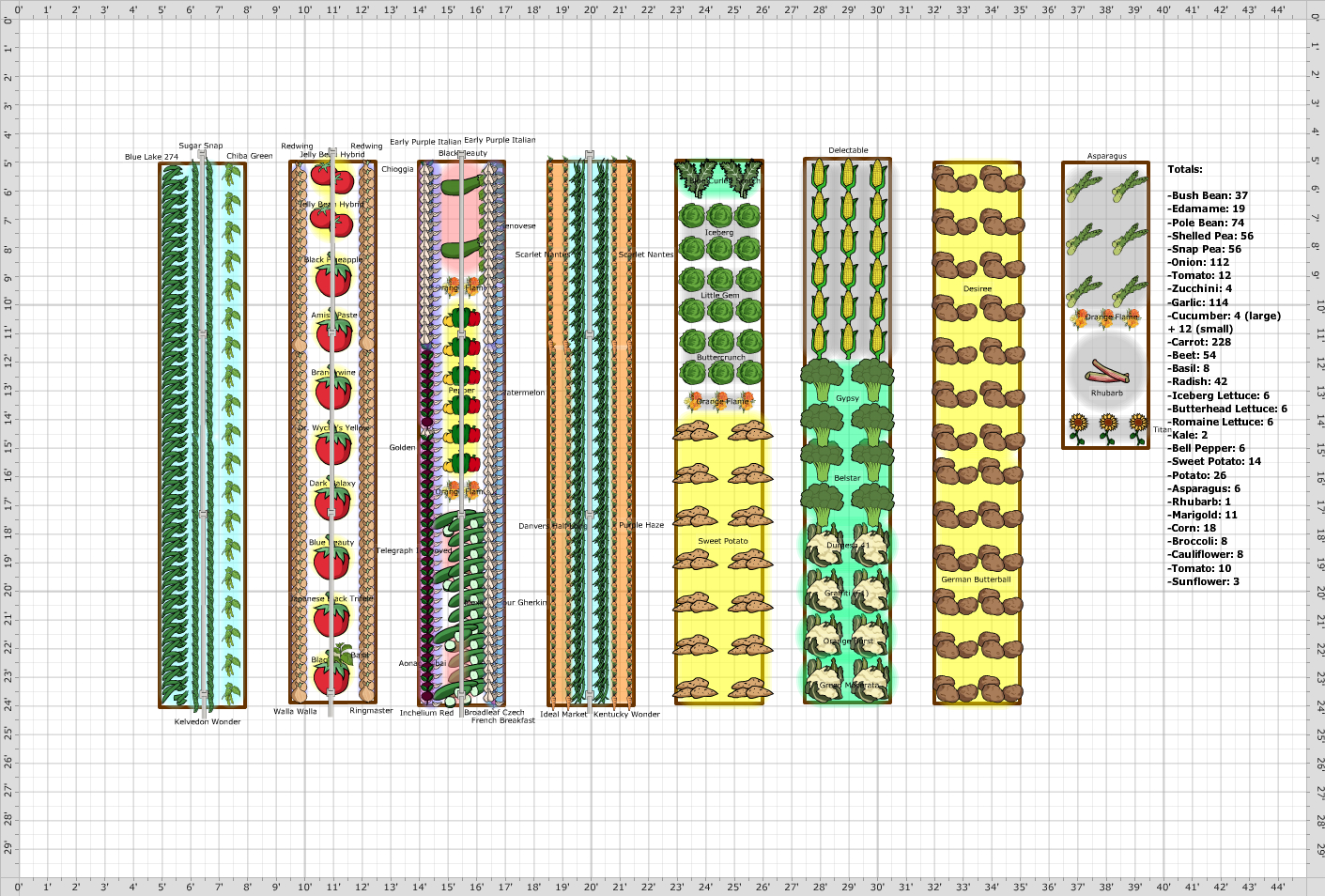 | | Plant | Number | Spacing | Spacing in Rows | Notes |